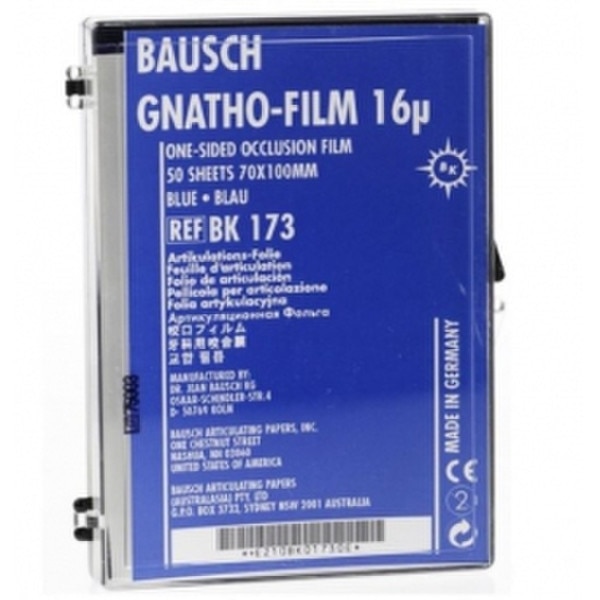 Bausch Gnatho-Film, 70mm x 100mm, 1 sided blue(0)No Reviews yet Pinit Please log in to see price or purchase this item Quantity discounts available QuantityPrice SKU: BK-173 Reviews 0 Back Ratings & ReviewsNo reviews availableBe the first to Write a Review